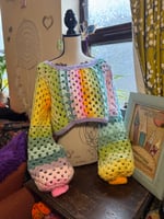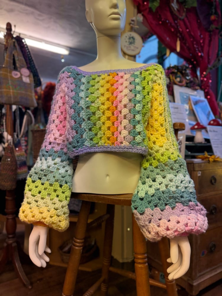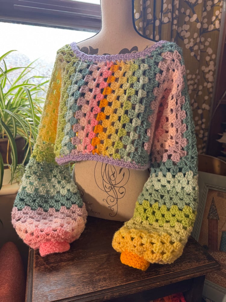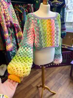 BUBBLE POP - crochet pastel rainbow cropped off shoulder jumper/sweater flared bell sleeve
