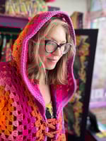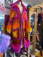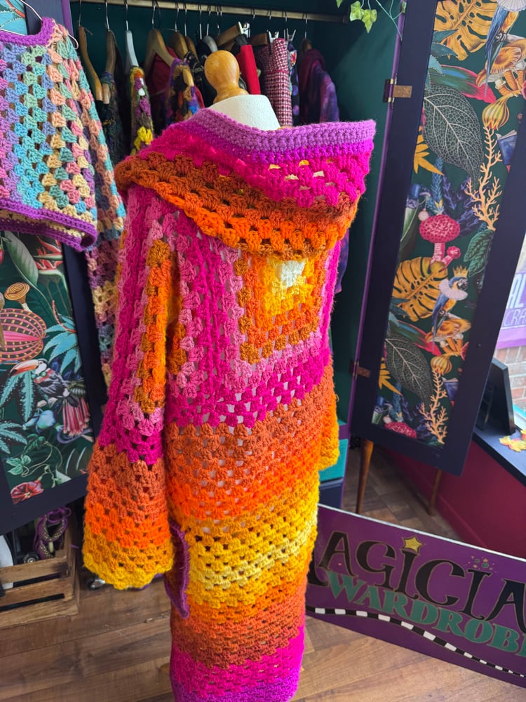 THE PORANGE PRINCESS - crochet art duster - pink orange yellow maxi long hooded cardigan
